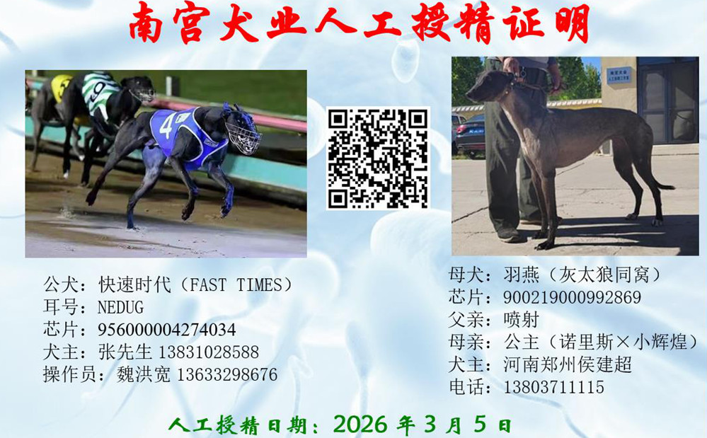 快速时代X羽燕 2026年3月5日郑州侯建超的格力犬种母羽燕使用邯郸张志江的格力犬种公快速时代人工授精 | 快速时代 Fast Times | 巴西亚贝尔 Barcia Bale | 去掉野性衬衫裤 Go Wild Teddy | 头上司Head Honcho |