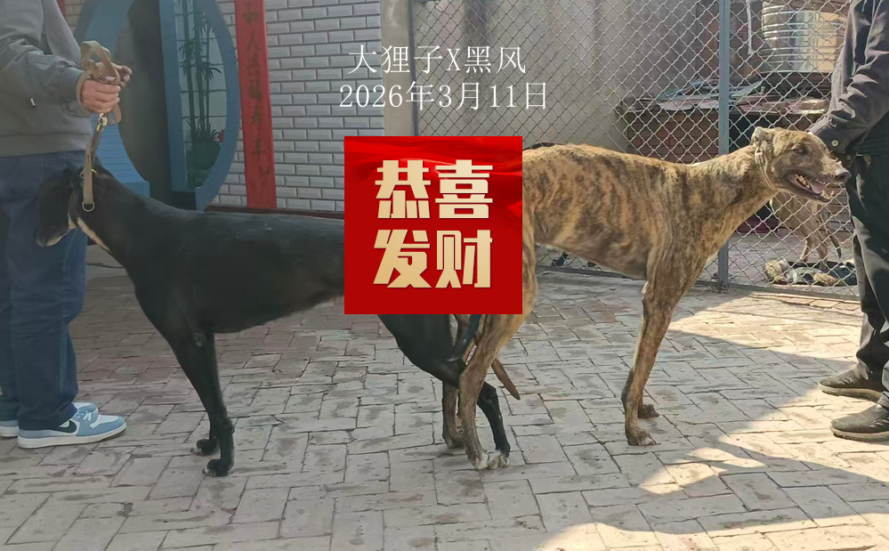 大狸子X黑风 2026年3月11日辛集赵长存的格力犬种母黑风使用安平田云超的格力犬种公大狸子配种 | 大狸子 900219002829457 | 尼克斯 RF Nix | 和所有 KC and All | 盖博-道奇Gable Dodge |