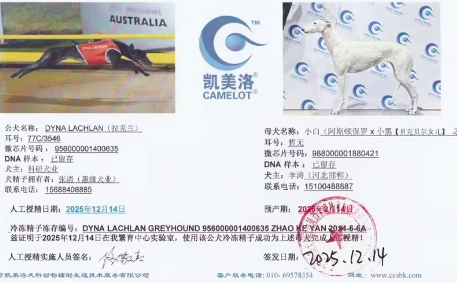 拉克兰X小白 2025年12月14日邯郸李先生的格力犬种母小白使用格力犬种公拉克兰人工授精 | 拉克兰 Dyna Lachlan | 去掉野性衬衫裤 Go Wild Teddy | 头上司 Head Honcho | 徒步旅行者希德Walkabout Sid |