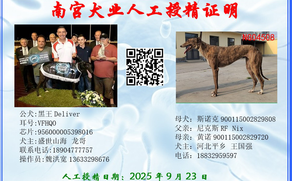 黑王X斯诺克 2025年9月23日平乡王国强的格力犬种母斯诺克使用鄂尔多斯延龙的格力犬种公黑王人工授精 | 黑王 YY7617 | 费尔南多 Fernando Bale | 凯尔索 Kelsos Fusileer | 盖博-道奇Gable Dodge |