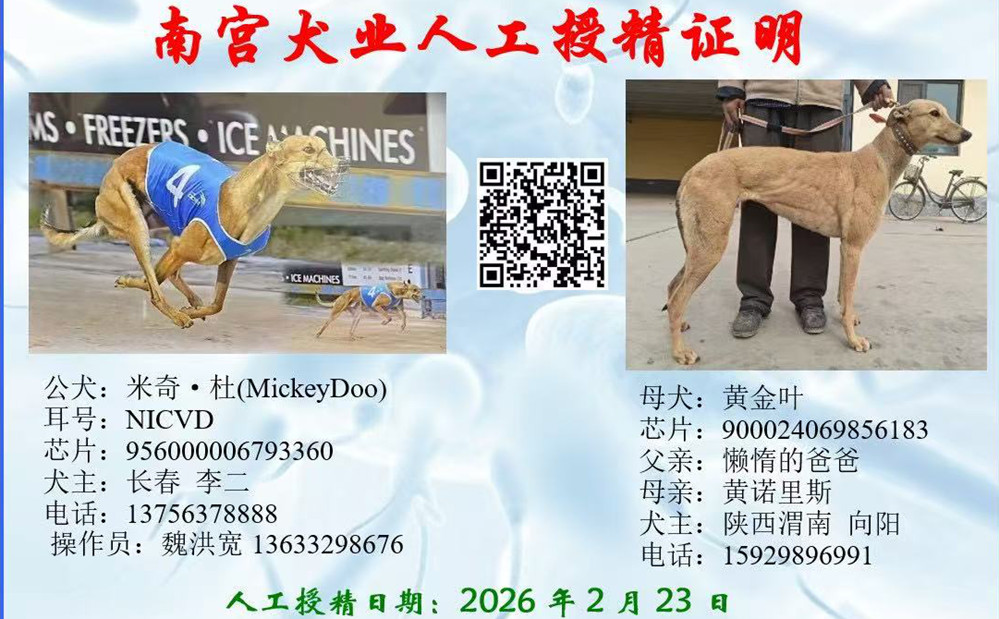 米奇杜X黄金叶 2026年2月23日渭南向阳的格力犬种母黄金叶使用长春李二的格力犬种公米奇杜人工授精 | 米奇杜 Mickey Doo | 阿斯顿迪比 Aston Dee Bee | 巴西亚贝尔 Barcia Bale | 去掉野性衬衫裤Go Wild Teddy |