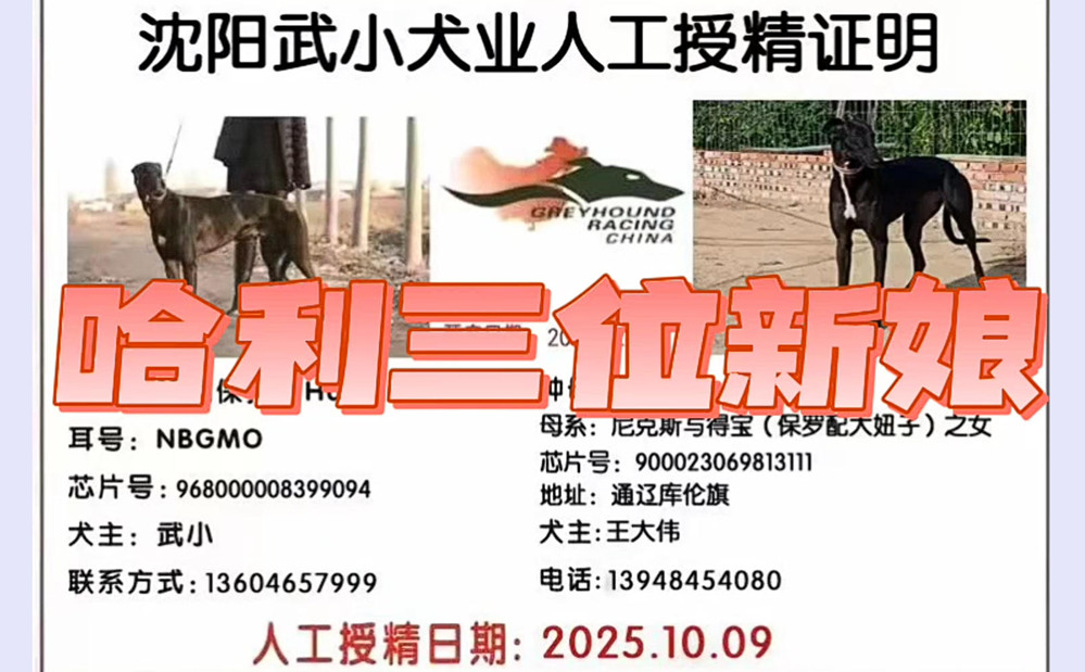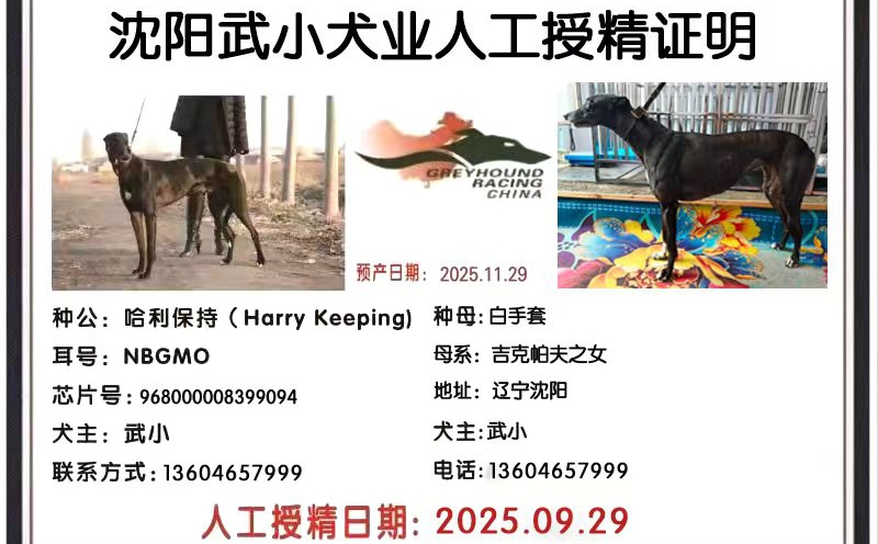 哈利保持X黑妞子 2025年10月9日库伦旗王大伟的格力犬种母黑妞子使用武小的格力犬种公哈利保持人工授精 | 哈利保持 Harry Keeping | 宇宙隆隆声 Cosmic Rumble | 螺旋形尼基塔 Spiral Nikita | 幻影闪现Phantom Flash |