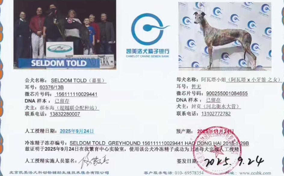 嘉里X阿瓦塔小姐 2025年9月24日大营封克的格力犬种母阿瓦塔小姐使用格力犬种公嘉里人工授精 | 嘉里 Seldom Told | 特伦特李 Trent Lee | 布瑞特李 Brett Lee | 枪法奥斯蒂Gun Law Osti |