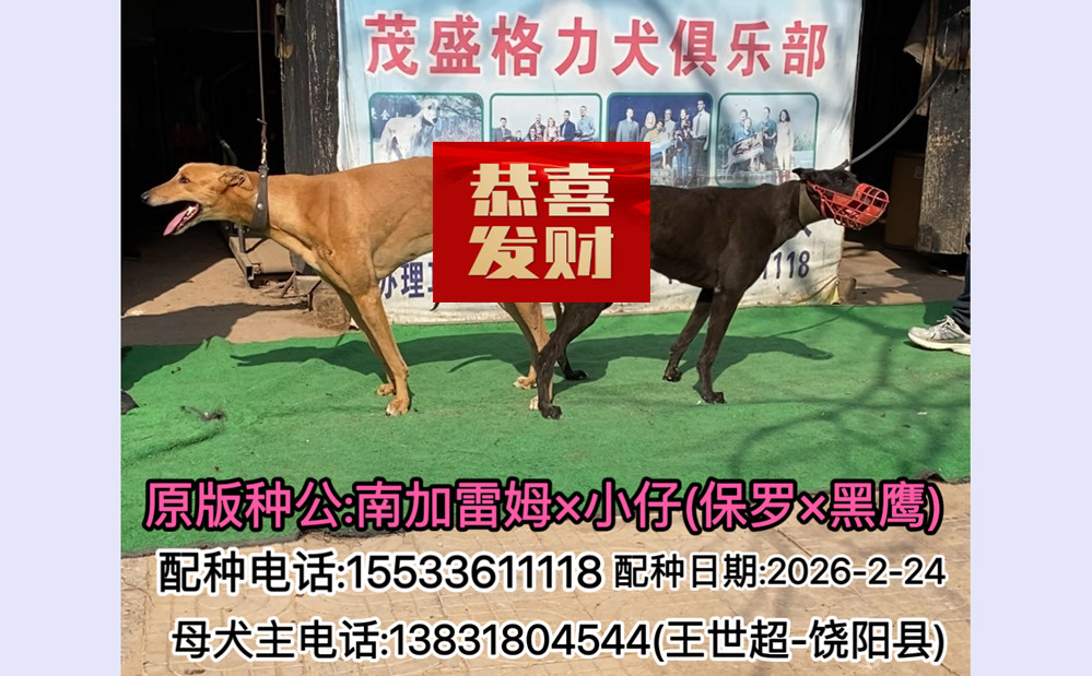 南加雷姆X小仔 2026年2月24日饶阳王世超的格力犬种母小仔使用晋州茂盛犬舍的格力犬种公南加雷姆配种 | 南加雷姆 Favourit | 里贝里 Ribery | 克维托瓦斯行为 Kvitovas Act | 图里莫里行为Tullymurry Act |