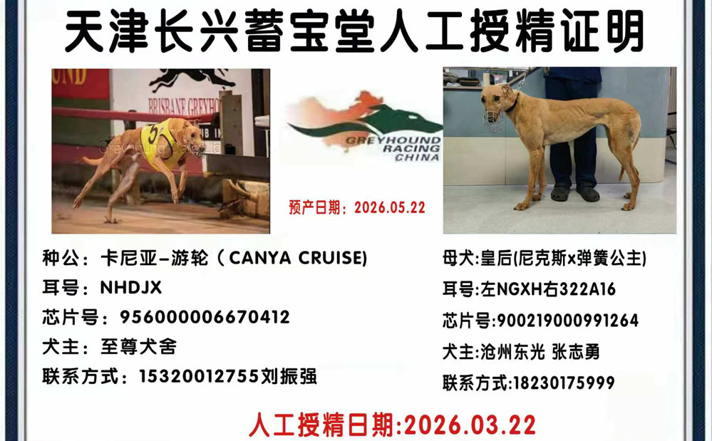 卡尼亚游轮X皇后 2026年3月22日沧州张志勇的格力犬种母皇后使用至尊犬舍的格力犬种公卡尼亚游轮人工授精 | 卡尼亚游轮 Canya Cruise | 巴西亚贝尔 Barcia Bale | 去掉野性衬衫裤 Go Wild Teddy | 头上司Head Honcho |