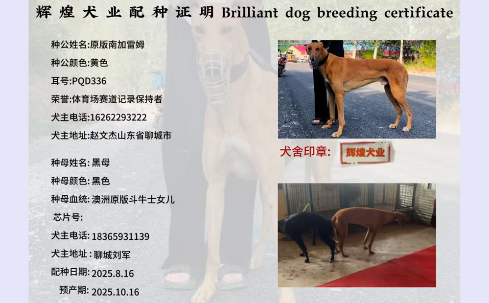 南加雷姆 Favourit 2022年9月8日出生于俄罗斯,后落户平阴赵文杰处