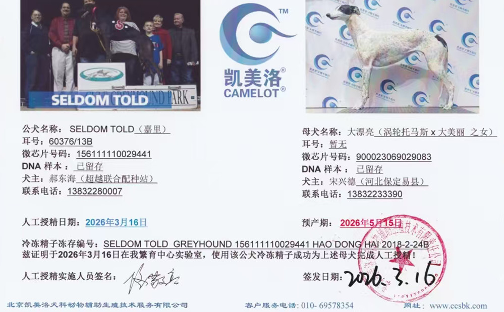 嘉里X大漂亮 2026年3月16日易县宋兴德的格力犬种母大漂亮使用格力犬种公嘉里人工授精 | 嘉里 Seldom Told | 特伦特李 Trent Lee | 布瑞特李 Brett Lee | 枪法奥斯蒂Gun Law Osti |