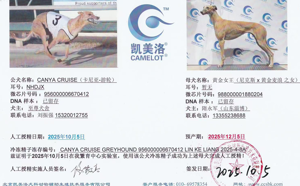 卡尼亚游轮X黄金女王 2025年10月5日淄博隋永军的格力犬种母黄金女王使用静海至尊犬舍的格力犬种公卡尼亚游轮人工授精 | 卡尼亚游轮 Canya Cruise | 巴西亚贝尔 Barcia Bale | 去掉野性衬衫裤 Go Wild Teddy | 头上司Head Honcho |