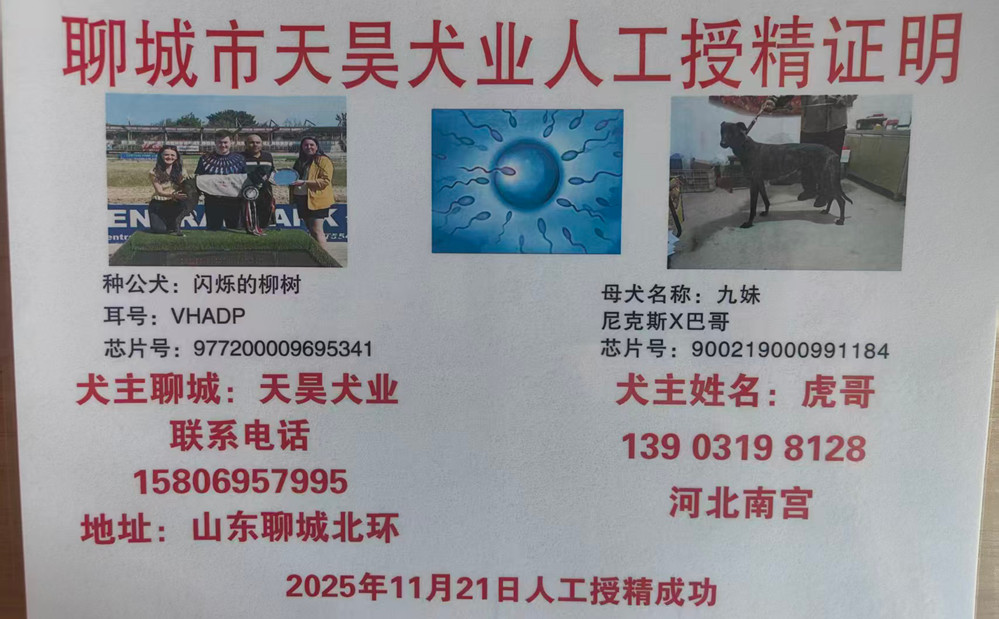 联系方式: 聊城天昊犬业 郭天宝15806957995,快手ID:961169866
