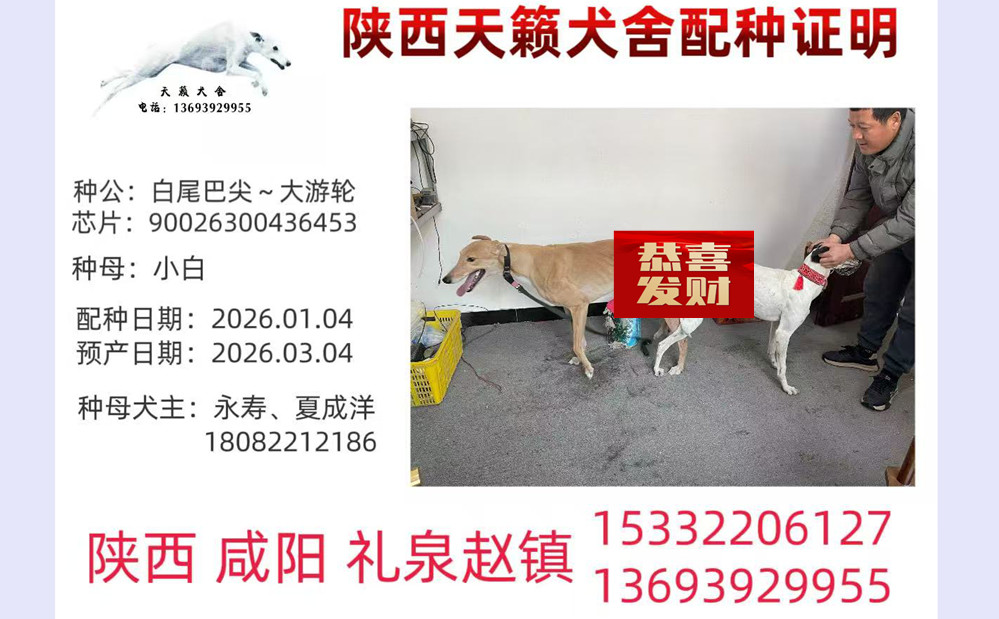 白尾巴尖大游轮 900263004364533 卡尼亚游轮X二黄之子,2021年11月出生于康平陈连生处,后落户咸阳高政处