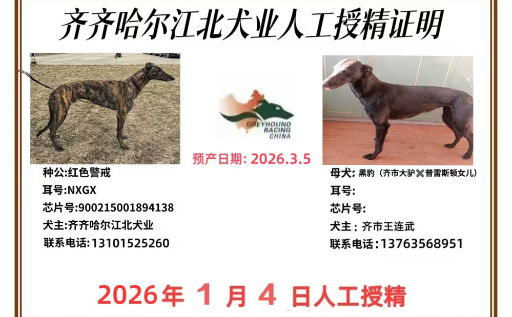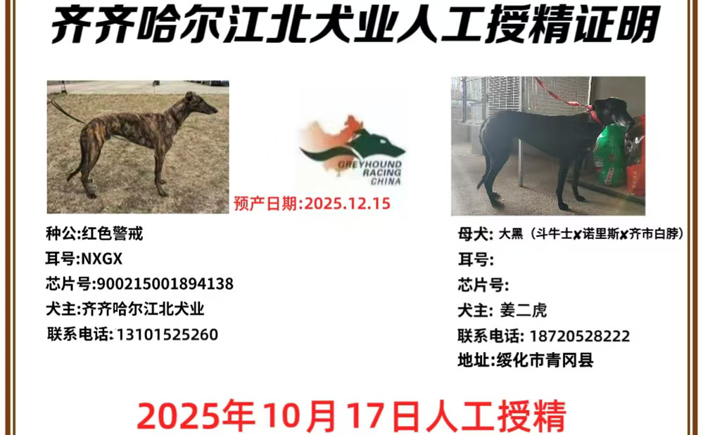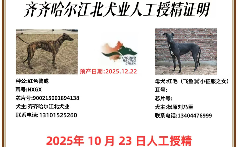 红色警戒 900215001894138 尼克斯X红色卡佳之子,2022年3月出生于曲阜孙宇处,后落户汶上盛地处,后落户齐齐哈尔张宝铭处