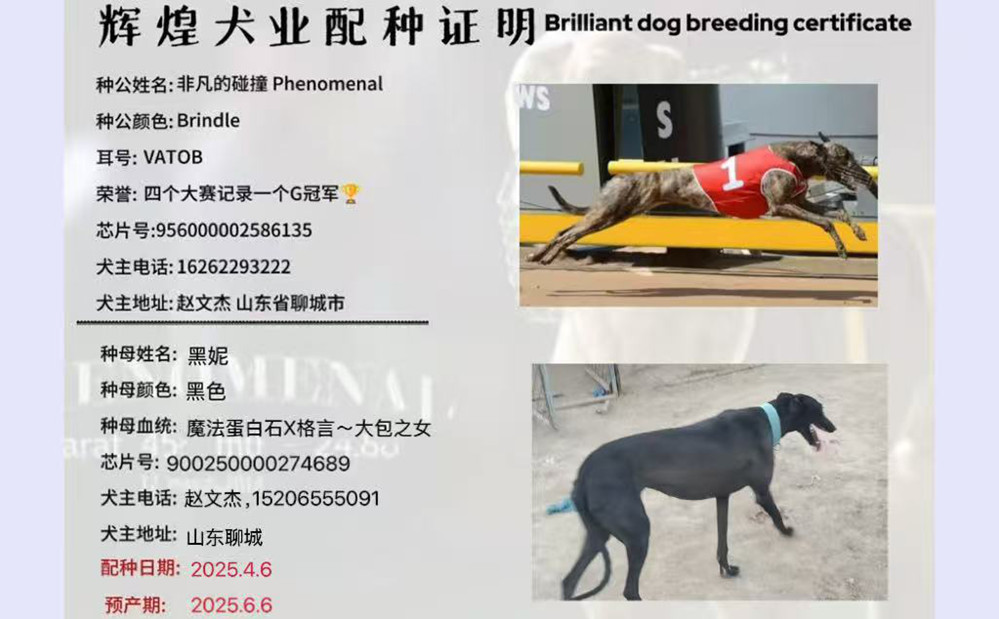 豆豆 900255002676313 非凡的碰撞X黑妮之子,2025年6月出生于聊城赵文杰处,后落户连云港朱毅处