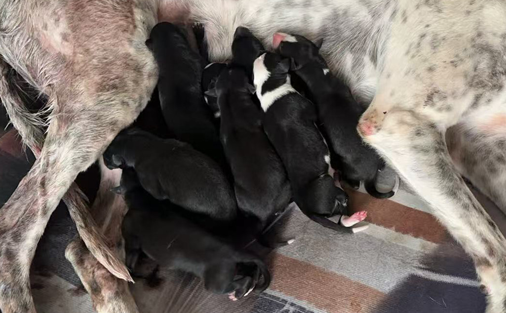 德鲁比·机械师X花豆包 2025年12月1日保定郑建辉的格力犬种母花豆包使用邢台翟光耀的格力犬种公机械师人工授精,并于2026年2月产下9条,5公4母 | 德鲁比·机械师 Off the Pitch | 坠落的战斗机 Droopys Jet | 柔滑百灵鸟 Slip the Lark | 拉克希尔-乔Larkhill Jo |