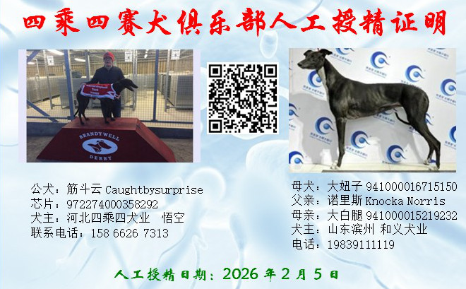 筋斗云X大妞子 2026年2月5日滨州和义的格力犬种母大妞子使用四乘四的格力犬种公筋斗云人工授精 | 筋斗云 Caughtbysurprise | 斯科拉里是我爸 Scolari Me Daddy | 坠落的斯科拉里 Droopys Scolari | 坠落的科威尔Droopys Kewell |