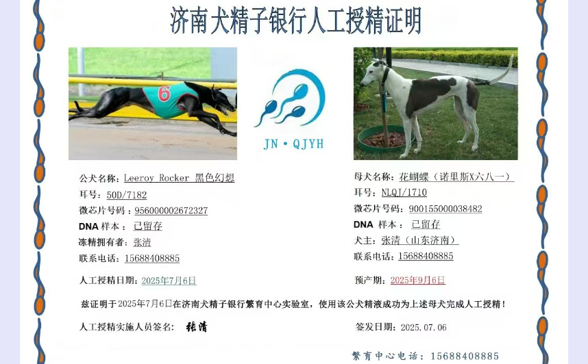 黑色幻想X花蝴蝶 2025年7月6日济南张清的格力犬种母花蝴蝶使用格力犬种公黑色幻想人工授精 | 黑色幻想 Leeroy Rocker | 总理幻想 Premier Fantasy | 总理县 Premier County | 古老的王子Vintage Prince |