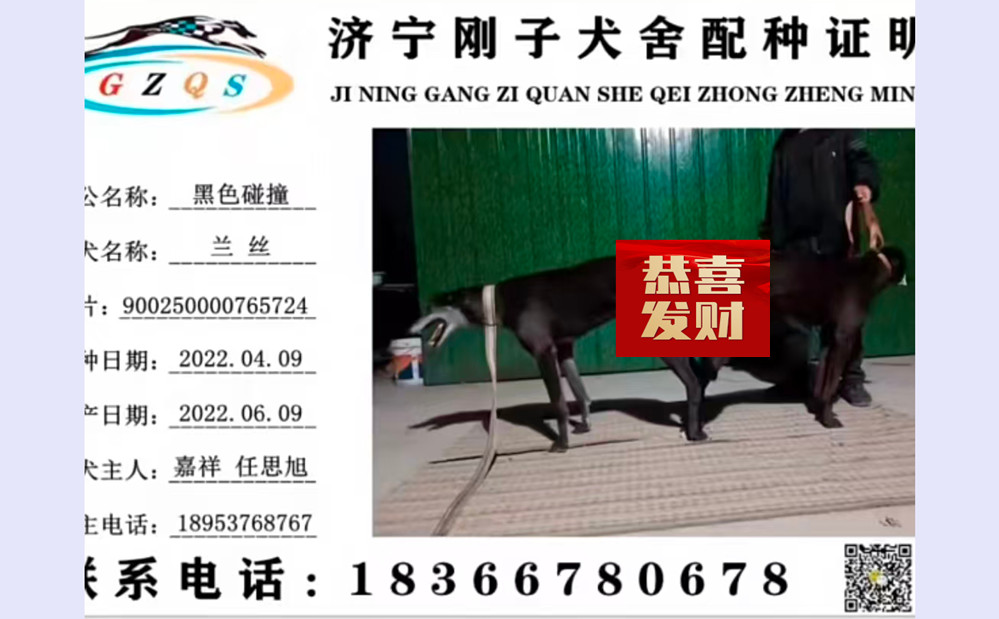 黑色碰撞X兰丝 2022年4月9日嘉祥任思旭的格力犬种母兰丝使用济宁刚子犬舍的格力犬种公黑色碰撞配种 | 黑色碰撞 Road Collision | 大碰撞 Collision | 可怕的刺客 Awesome Assassin | 火光Light of Fire |