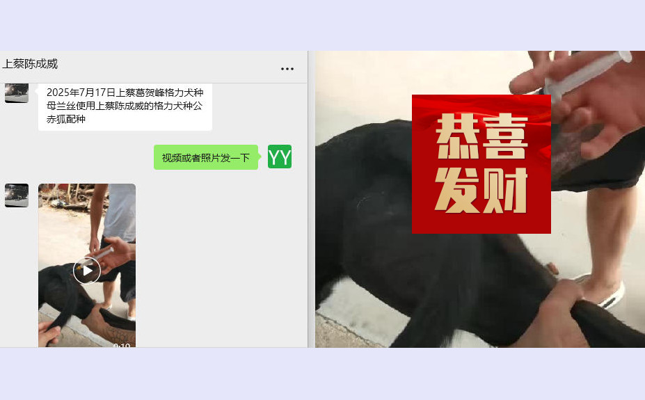 赤狐X兰丝 2025年1月1日上蔡葛贺峰的格力犬种母兰丝使用上蔡陈成威的格力犬种公赤狐人工授精 | 赤狐 900215001894140 | 哈利保持 Harry Keeping | 宇宙隆隆声 Cosmic Rumble | 螺旋形尼基塔Spiral Nikita |