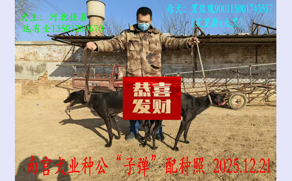 子弹X黑玫瑰 2025年12月21日任县达有全的格力犬种母黑玫瑰使用格力犬种公子弹配种 | 子弹 Lexie the Bullet | 坠落的战斗机 Droopys Jet | 柔滑百灵鸟 Slip the Lark | 拉克希尔-乔Larkhill Jo |