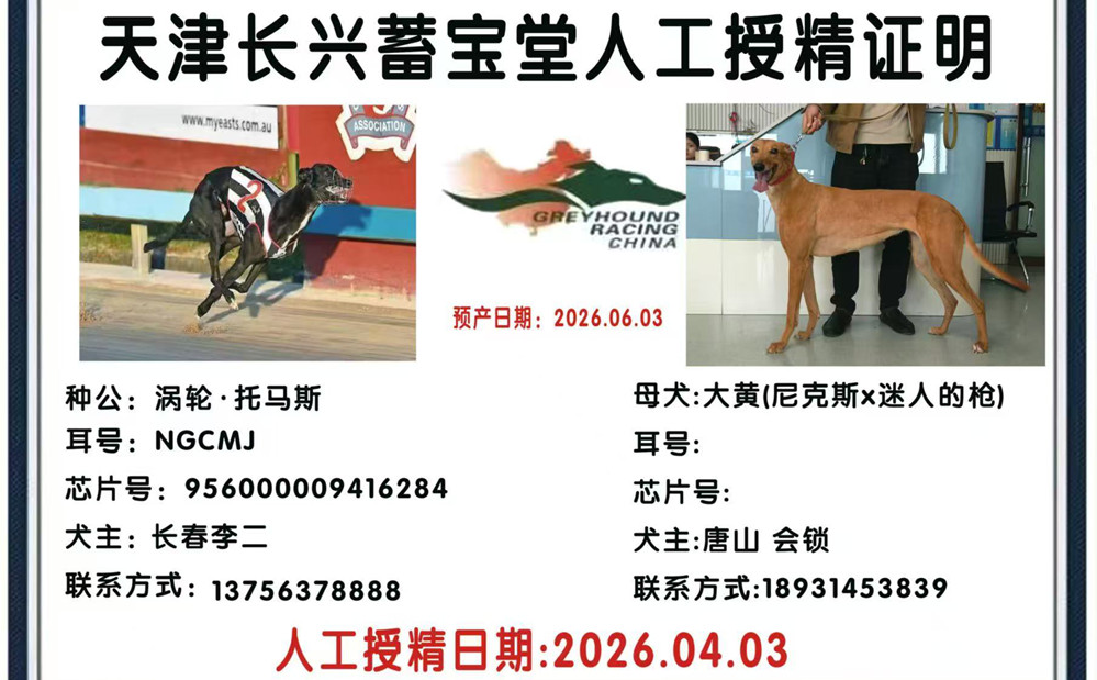 涡轮·托马斯 Turbo Thomas 2017年5月17日出生于澳大利亚,GRV记载29次参赛22次第一、3次第二、1次第三,总奖金54439澳币,以17连胜打破澳大利亚TAB最高连胜记录,400米21.96秒,后落户惠缘犬业,2022年3月落户济宁博跃犬舍,后落户长春李二处
