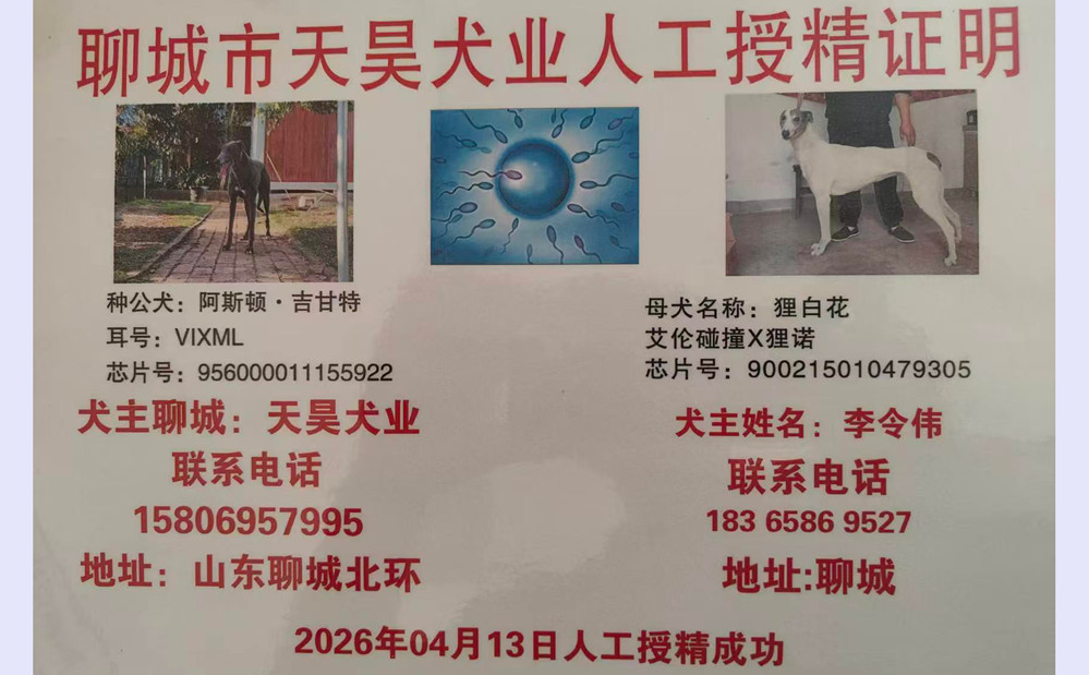 阿斯顿·吉甘特X狸白花 2026年4月13日格力犬种母狸白花使用聊城天昊犬业的格力犬种公阿斯顿吉甘特人工授精(注:此窝由李令伟繁殖) | 阿斯顿·吉甘特 Aston Gigante | 和所有 KC and All | 盖博-道奇 Gable Dodge | 棚屋摇晃Wigwam Wag |