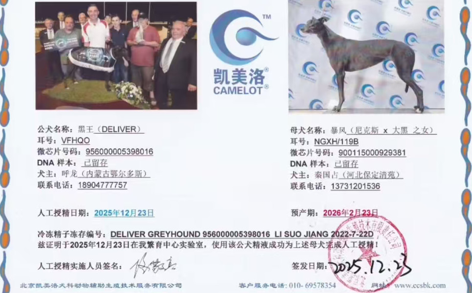 黑王X暴风 2025年12月23日清苑秦国占的格力犬种母暴风使用鄂尔多斯延龙的格力犬种公黑王人工授精 | 黑王 YY7617 | 费尔南多 Fernando Bale | 凯尔索 Kelsos Fusileer | 盖博-道奇Gable Dodge |