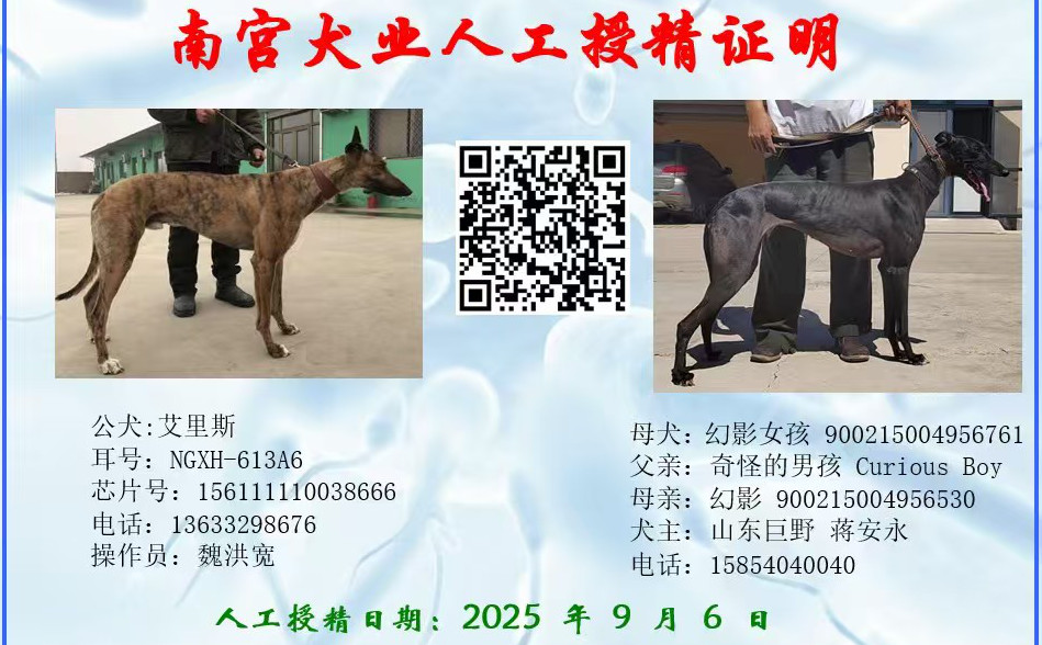 艾里斯X幻影女孩 2025年9月6日巨野蒋安永的格力犬种母幻影女孩使用格力犬种公艾里斯人工授精 | 艾里斯 NGXH 613A6 | 诺里斯 Knocka Norris | 精华情形 Elite State | 最好的Just the Best |