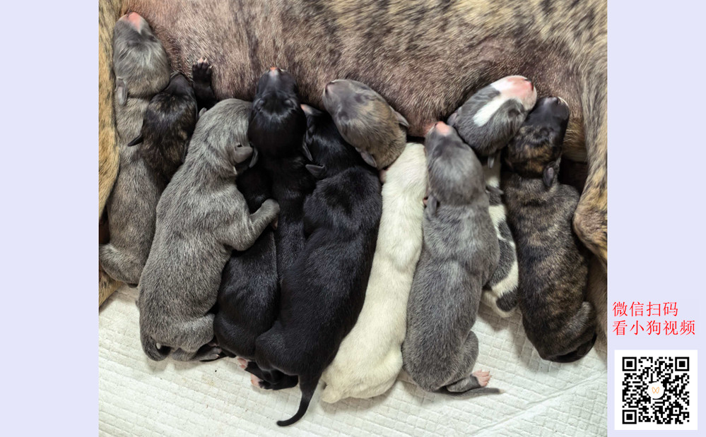 黑王X火凤凰 2023年3月2日任丘刘长胜的格力犬种母火凤凰使用任丘山河庄园的格力犬种公黑王人工授精,并于2023年5月2日产下12条,3公9母 | 黑王 YY7617 | 费尔南多 Fernando Bale | 凯尔索 Kelsos Fusileer | 盖博-道奇Gable Dodge |