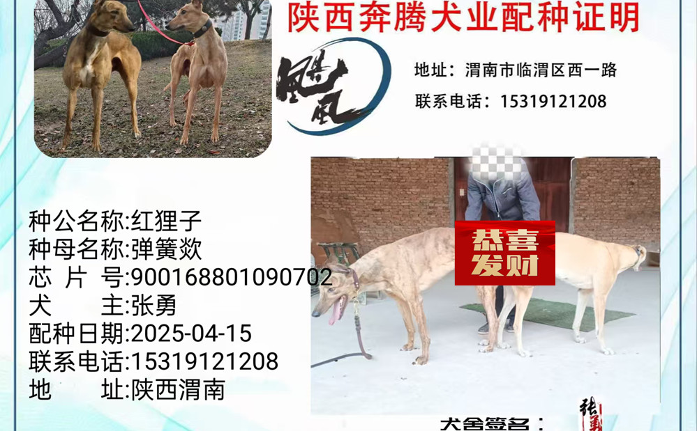 红狸子X弹簧欻 2025年4月15日渭南张勇的格力犬种母弹簧欻使用渭南张勇的格力犬种公红狸子配种 | 红狸子 900023069708620 | 魔法蛋白石 Black Magic Opal | 魔法雪碧 Magic Sprite | 布瑞特李Brett Lee |