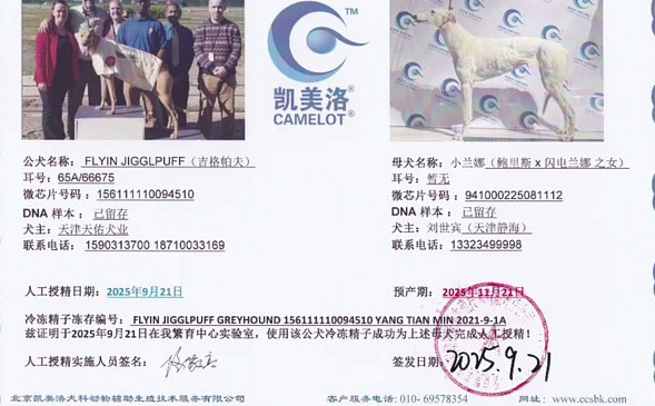 尼克斯X小兰娜 2023年6月2日静海刘世宾的格力犬种母小兰娜使用南宫犬业的格力犬种公尼克斯人工授精 | 尼克斯 RF Nix | 和所有 KC and All | 盖博-道奇 Gable Dodge | 棚屋摇晃Wigwam Wag |