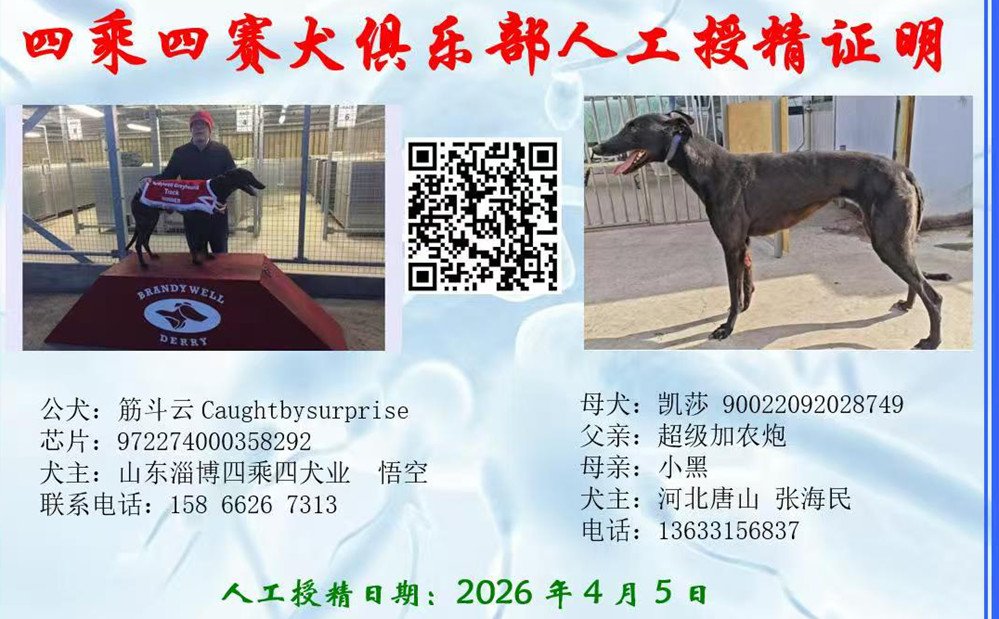 筋斗云X凯莎 2026年4月5日唐山张海民的格力犬种母凯莎使用淄博四乘四的格力犬种公筋斗云人工授精 | 筋斗云 Caughtbysurprise | 斯科拉里是我爸 Scolari Me Daddy | 坠落的斯科拉里 Droopys Scolari | 坠落的科威尔Droopys Kewell |