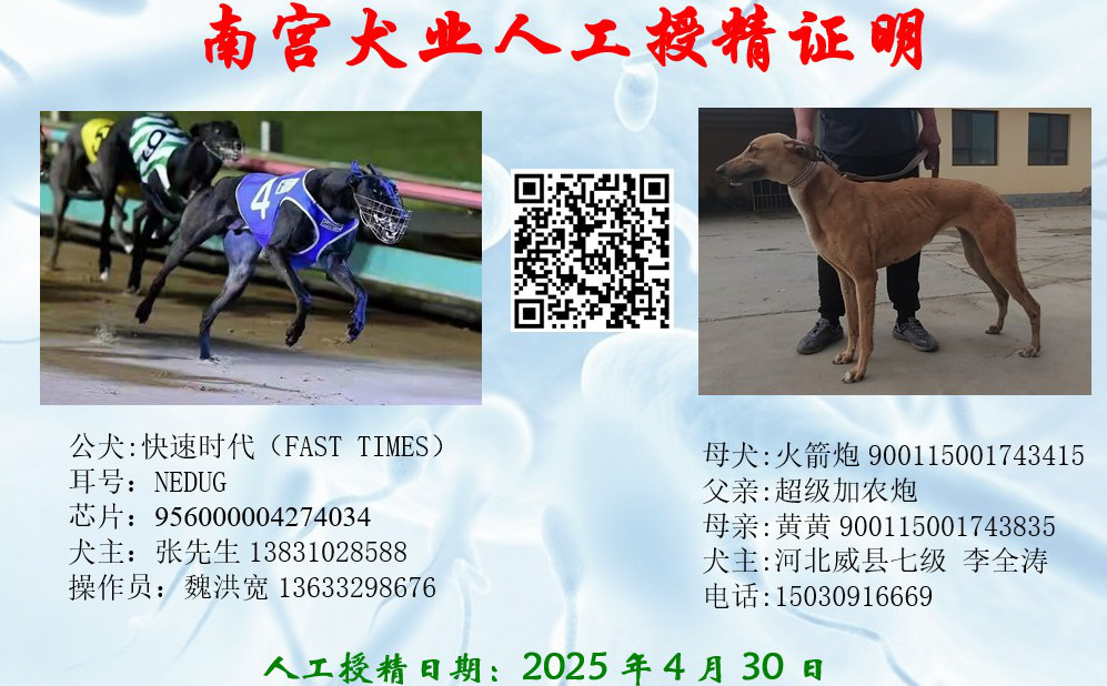 快速时代X火箭炮 2025年4月30日格力犬种母火箭炮使用邯郸张志江的格力犬种公快速时代人工授精(此窝由威县李全涛繁殖) | 快速时代 Fast Times | 巴西亚贝尔 Barcia Bale | 去掉野性衬衫裤 Go Wild Teddy | 头上司Head Honcho |