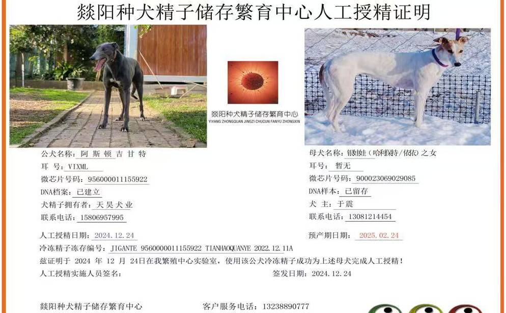 卡尼亚游轮X银娃娃 2023年5月2日台安于震的格力犬种母银娃娃使用静海至尊犬舍的格力犬种公卡尼亚游轮人工授精 | 卡尼亚游轮 Canya Cruise | 巴西亚贝尔 Barcia Bale | 去掉野性衬衫裤 Go Wild Teddy | 头上司Head Honcho |