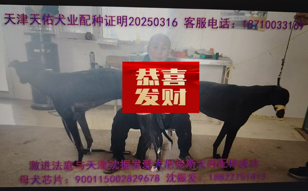 激进法庭X貂蝉 2025年3月16日静海沈振发的格力犬种母貂蝉使用天佑犬业的格力犬种公激进法庭配种 | 激进法庭 Radical Court | 坠落的悉尼 Droopys Sydney | 特别公爵 Duke Special | 巴利马克梅芙Ballymac Maeve |