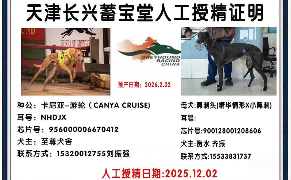 卡尼亚游轮X黑刺头 2025年12月2日衡水齐振的格力犬种母黑刺头使用静海至尊犬舍的格力犬种公卡尼亚游轮人工授精 | 卡尼亚游轮 Canya Cruise | 巴西亚贝尔 Barcia Bale | 去掉野性衬衫裤 Go Wild Teddy | 头上司Head Honcho |