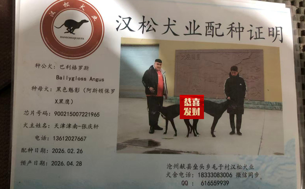 巴利格罗斯X黑色魅影 2026年2月26日津南张庆轩的格力犬种母黑色魅影使用献县毛汉松的格力犬种公巴利格罗斯配种 | 巴利格罗斯 Ballygloss Angus | 格伦加·贝尔 Glengar Bale | 巴西亚贝尔 Barcia Bale | 去掉野性衬衫裤Go Wild Teddy |